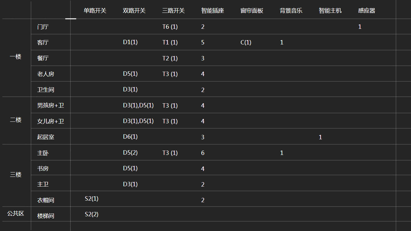 可對全屋燈光進行智能控制與管理,包括智能開關、一鍵場景、燈帶RGB調色。可全屋窗簾進行自動開、關、停控制(衛生間除外)。各房間配比智能插座共41個,實現智能控制可視音樂云門鈴,自定義門鈴音樂。客廳、主臥、2個小孩房、父母房、書房實現高品質背景音樂享受,私享影院高級音效。一樓入戶門廳、樓梯間、衛生間、衣帽音區域智能燈光人體感應|悠達APP及背景音樂控制面板管理全屋悠達智能設備。
