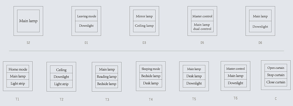 可對全屋燈光進行智能控制與管理,包括智能開關、一鍵場景、燈帶RGB調色。可全屋窗簾進行自動開、關、停控制(衛生間除外)。各房間配比智能插座共41個,實現智能控制可視音樂云門鈴,自定義門鈴音樂。客廳、主臥、2個小孩房、父母房、書房實現高品質背景音樂享受,私享影院高級音效。一樓入戶門廳、樓梯間、衛生間、衣帽音區域智能燈光人體感應|悠達APP及背景音樂控制面板管理全屋悠達智能設備。
