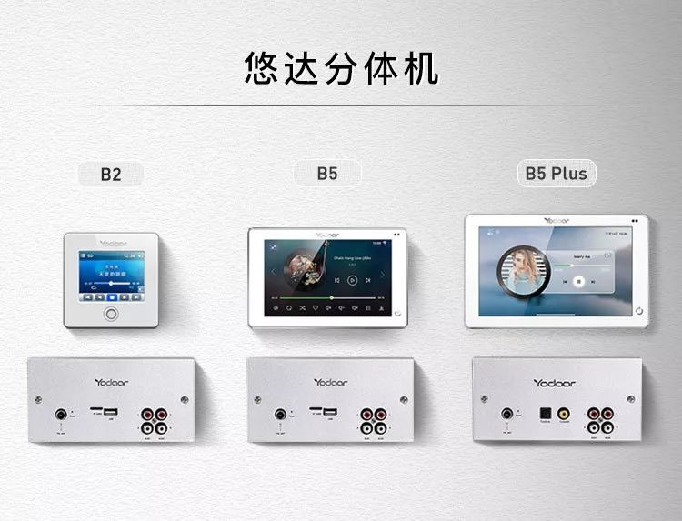 分體機單點背景音樂系統,悠達一直是一枝獨秀,從2011年上市至今,穩步走過快10個年頭,并贏得了一大批粉絲。從最初的B2系列,到2013年上市的B5系列,到今年5月上市的B5 plus系列,B系列分體機一直是悠達家的明星產品
