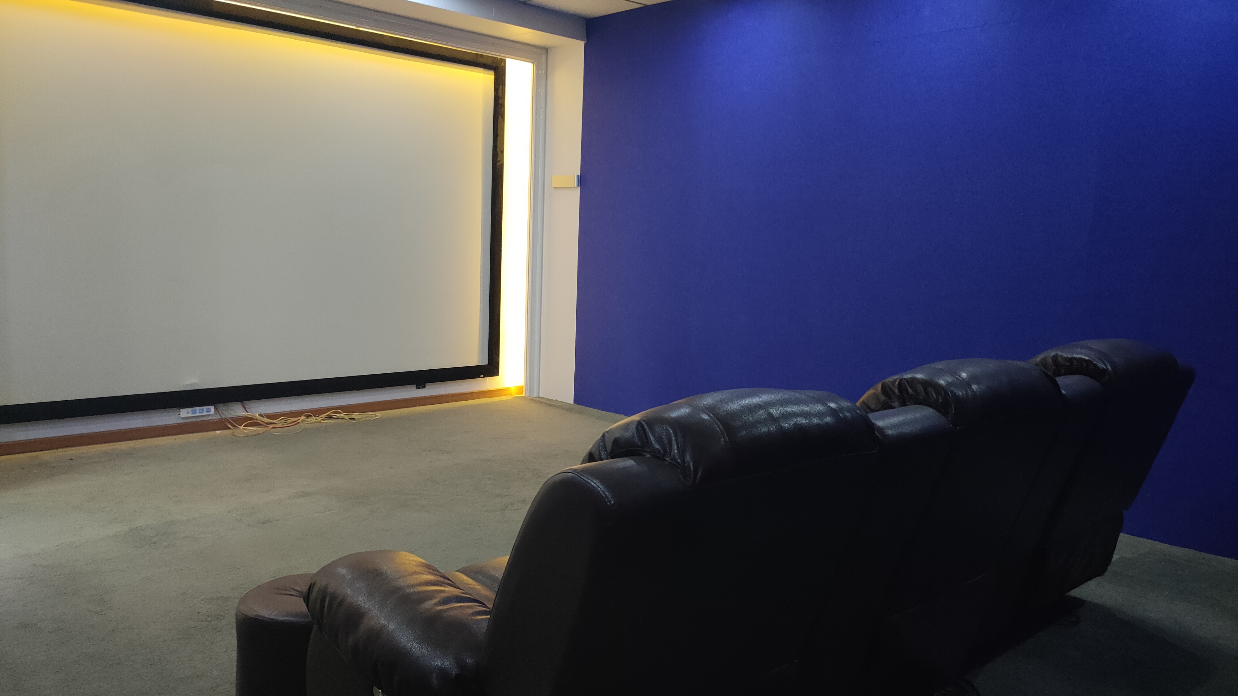 家庭影院由高清投影機、巨型幕布、專業音箱、座椅、智能燈帶等組成,可以打造出影院級的視聽效果。用戶參觀產品與樣板間之余,可以在智能影院區一鍵打開“觀影模式”,享受沉浸式的觀影體驗。