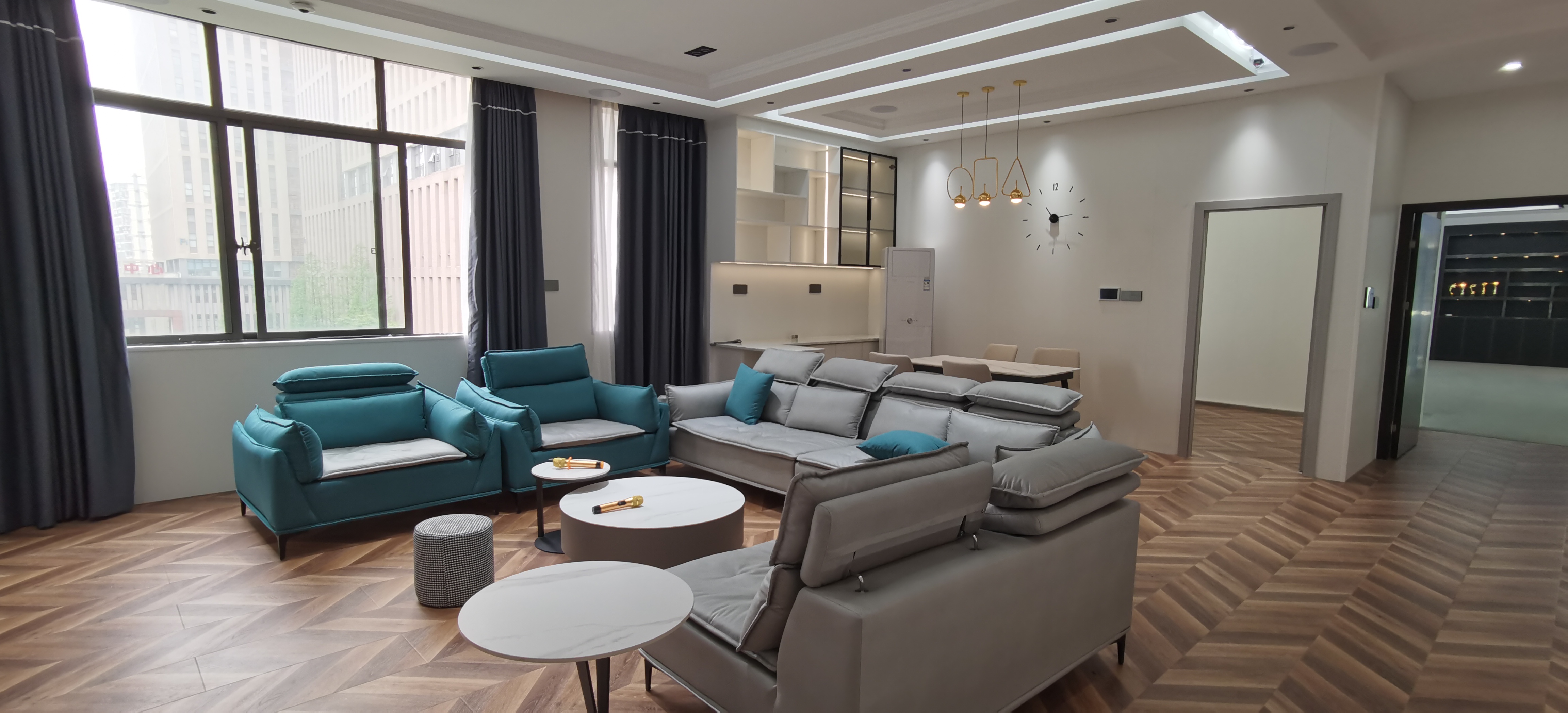 智能家居樣板房包括了客廳、臥室、廚房等功能區,涵蓋智能燈光、智能窗簾、智能背景音樂、K歌娛樂系統、智能開關面板、智能中控屏、智能家電控制系統、安防報警系統等,客戶在參觀時可通過手機app、AI語音、面板、中控屏等多種方式進行控制,更真實地體驗智能居家生活。