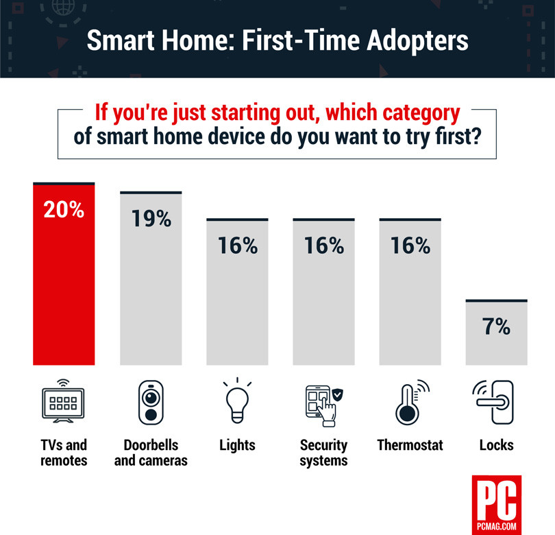 智能家居——讓復雜的生活簡單化-長沙一待電子科技有限公司 _Yodaar悠達_十大家庭背景音樂系統_智能家居品牌【官網】-PCMag調查了2000多名美國消費者關于智能家居偏好的信息,以了解人們希望首先嘗試哪些設備以及哪些連接優勢對他們最有吸引力?;蛟S通過這份調查,可以幫助很多智能家居小白用戶進一步了解智能家居,尤其是如何開啟自己的智能家居生活之旅?! ≈悄芗揖蛹夹g無處不在。從客廳的智能音箱到智能門鈴,燈,鎖,廚房用具等等,有無數種方式可以讓你的家居生活更加智能化,并且可以隨心所欲地將它們連接起來。但是過