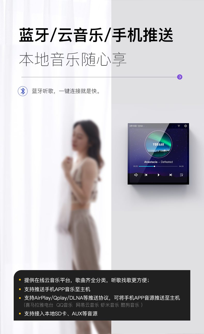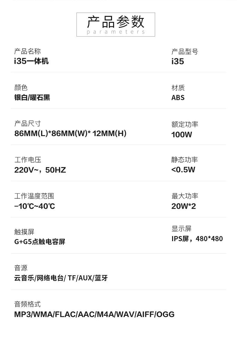 全新i35一體機(jī),采用全面屏設(shè)計(jì),4吋機(jī)身,更加精致小巧,可以搭配各種家裝風(fēng)格。除了外觀上的改變,各項(xiàng)功能也是十分優(yōu)異。音源上,提供藍(lán)牙、云音樂、手機(jī)推送、本地音樂等各種選擇,讓你在家想聽就聽。操作上,提供面板、AI語(yǔ)音、手機(jī)APP、手機(jī)遠(yuǎn)程等各種智控方式,讓操作更加簡(jiǎn)單、便捷。