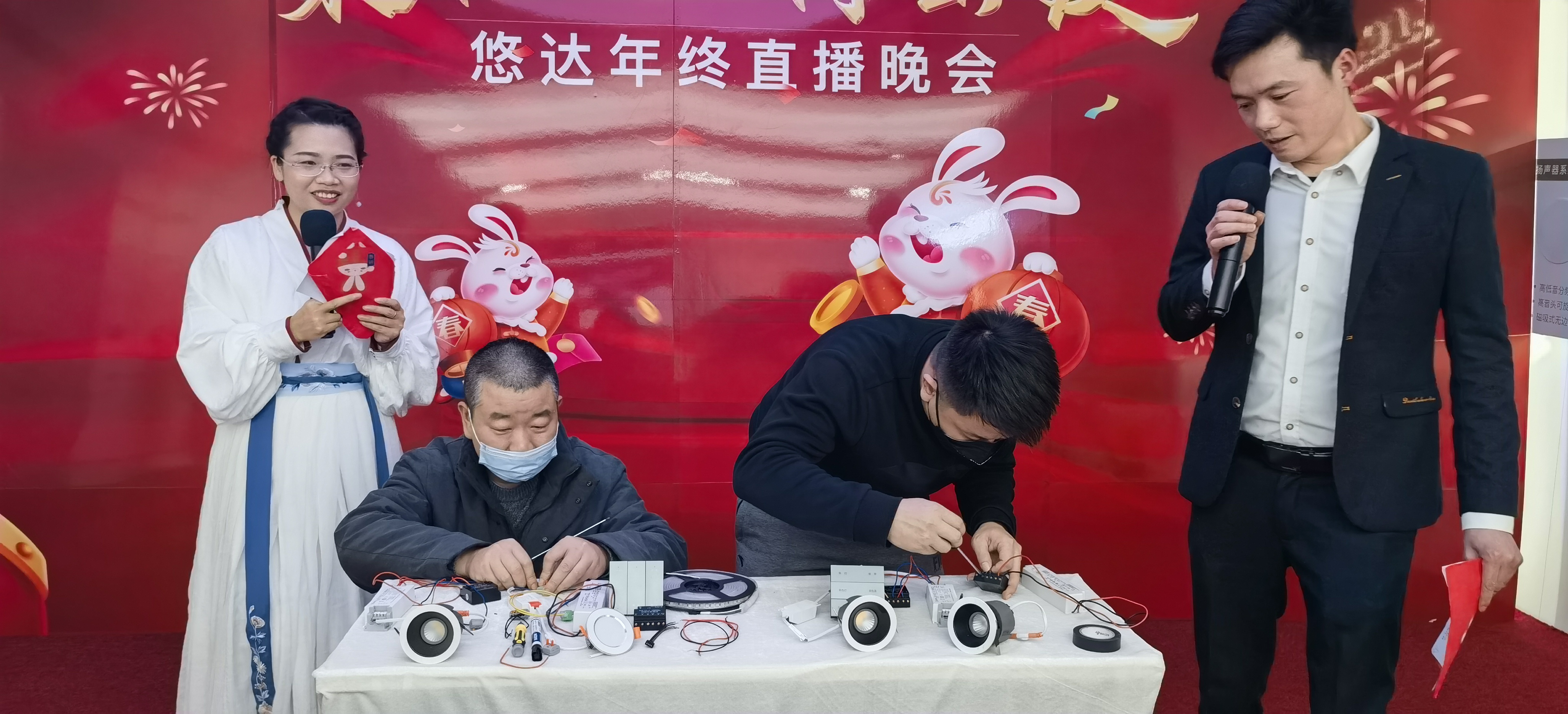 直播當晚,悠達副總經理吳天舒先生分享了2022年悠達的主要工作與成績;悠達CEO吳文茂先生以誠懇的態度總結了2022年存在的主要問題,同時對新一年的工作提出了新目標、新展望;悠達市場營銷總監柳湘林先生對全新升級的悠達云音樂曲庫、年度新品i35、i36、wifi智能家居系統進行了一一介紹。辭舊歲,展新顏,相信嶄新的2023年,我們都將創造出更好成績。