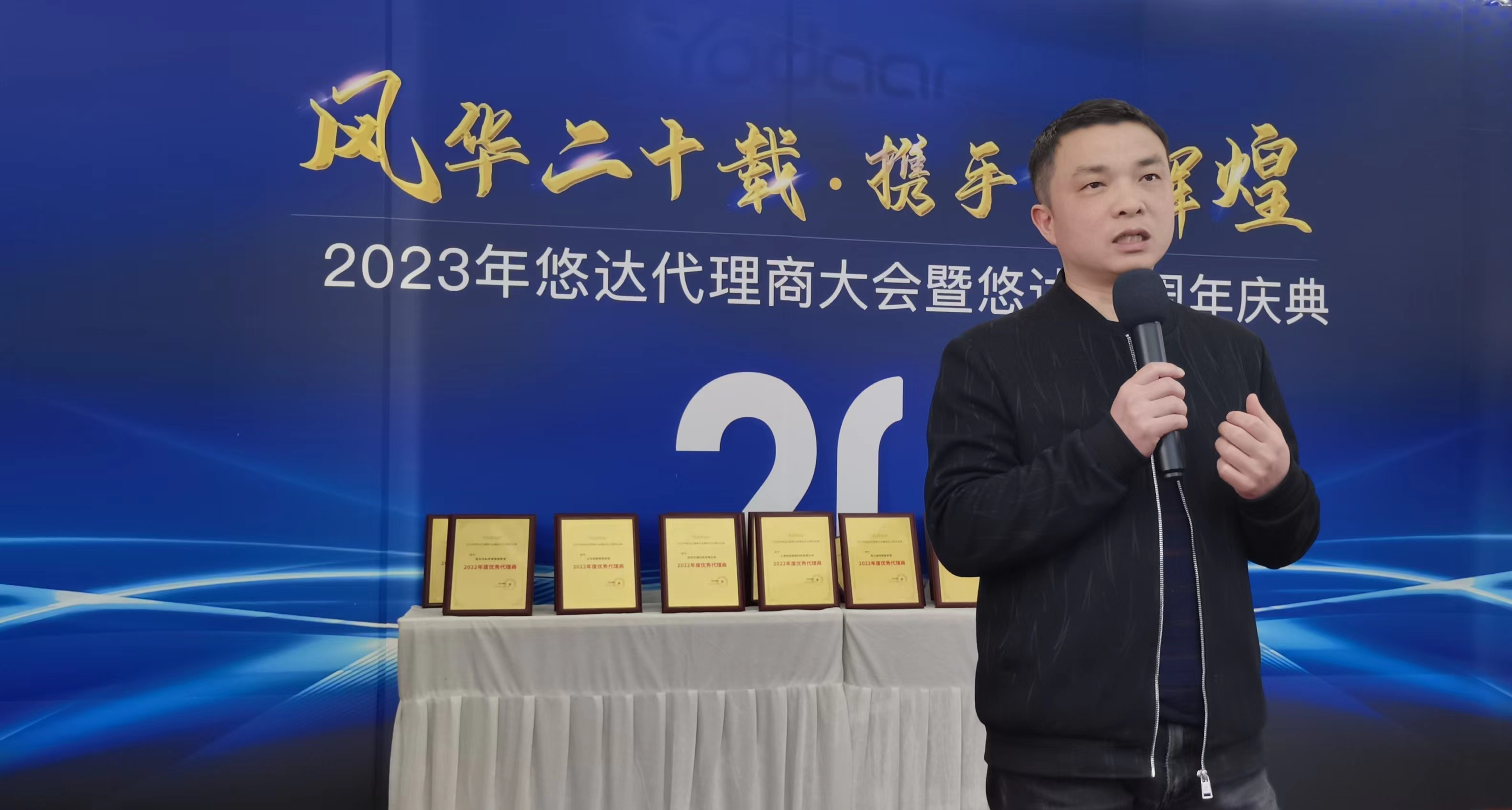 作為大會重要環節,本屆代理商頒獎典禮儀式感十足。除了頒發年度優秀代理商獎之外,悠達還在20周年慶典這一特別日子里,頒發了杰出貢獻獎、中堅伙伴獎、最具潛力獎、風雨同舟獎等數項特別獎項。大會上,悠達副總經理吳天舒先生隆重揭曉了所有獲獎代理商名單,對大家的支持與認可表示由衷感謝,同時也對新一年的合作表達了美好祝愿。